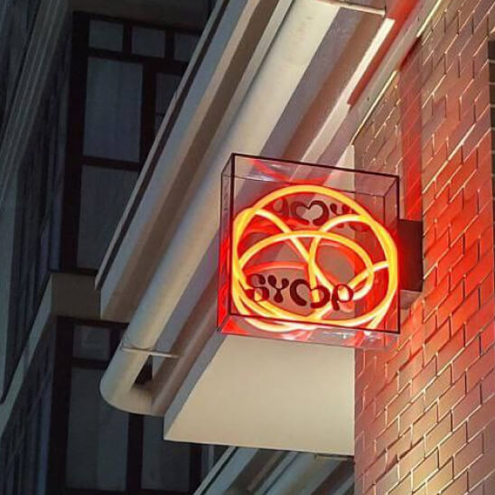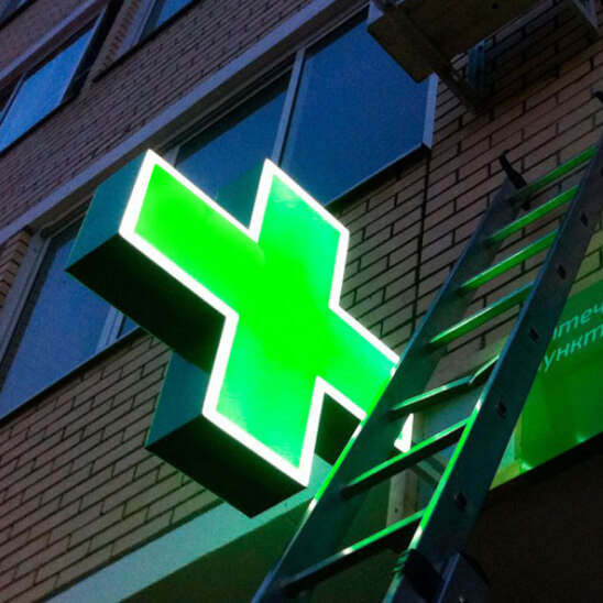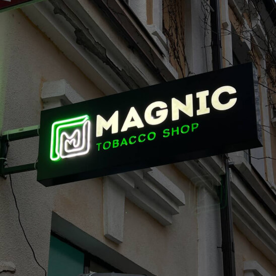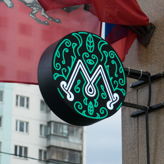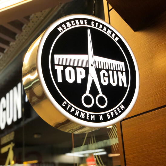 Такой вид вывески устанавливают перпендикулярно зданию или на мачту уличного освещения.