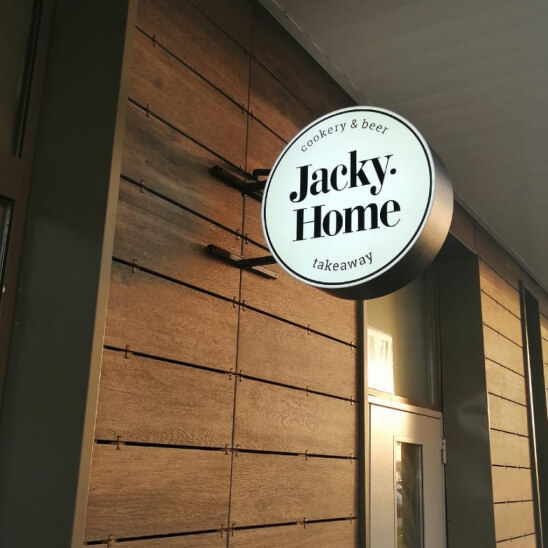 Для изготовления используют специальный алюминиевый или пластиковый профиль (борт) и лицевую часть. Есть двусторонняя подсветка. Очень просто собирается и имеет невысокую цену. Привлекает внимание посетителей и придает зданию свежий вид.
