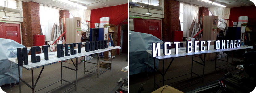 Можно было бы добавить для светлого времени суток контражурное свечение, чтобы черные буквы еще больше выделялись, но заказчика устроил вариант без подсветки.