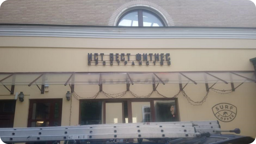 Фасадные вывески для большинства спорт-центров должны быть видны 24/7, так как заведения работают круглосуточно. Лучше всего с этим справятся вывески с подсветкой.