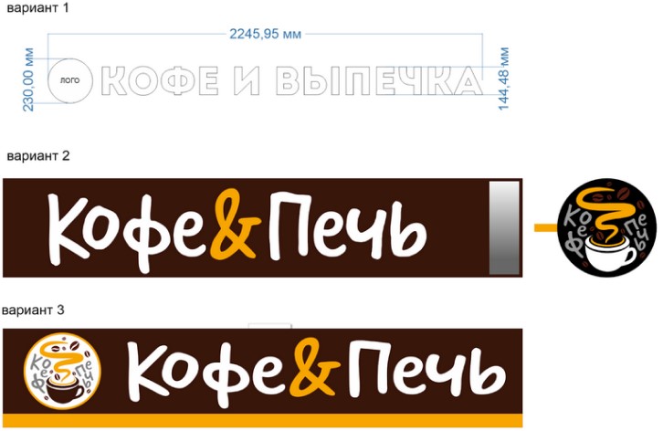 Всё начиналось с обычных букв и названия “кофе и выпечка”, а после трансформировалась в яркую стильную вывеску с интересным шрифтом и лого.